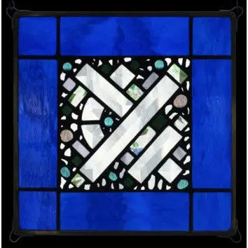 Edel Byrne Cobalt Border Geometric Stained Glass Panel Artistic Artisan Designer Stain Glass Window Panels Sweetheart Gallery Contemporary Craft Gallery Fine American Craft Art Design Handmade Home Personal Accessories